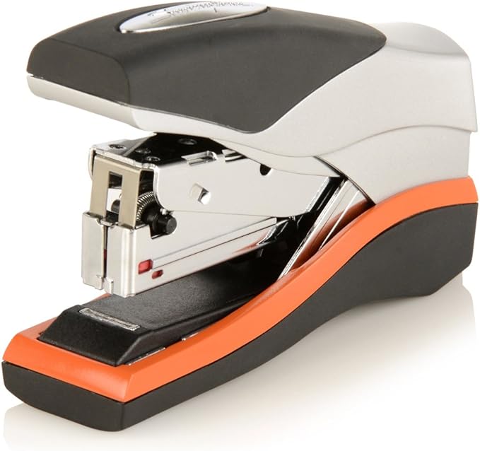 The subtle Gray and Black coloring with an Orange accent create a compelling pop of color. This Optima stapler has 40 sheets capacity and works really well with Swingline Optima Premium Staples. Also, It requires minimal force than the traditional ones.